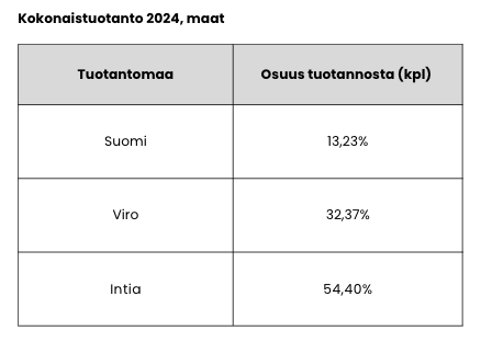 Tuotteemme valmistetaan alihankintana Suomessa, Virossa ja Intiassa.